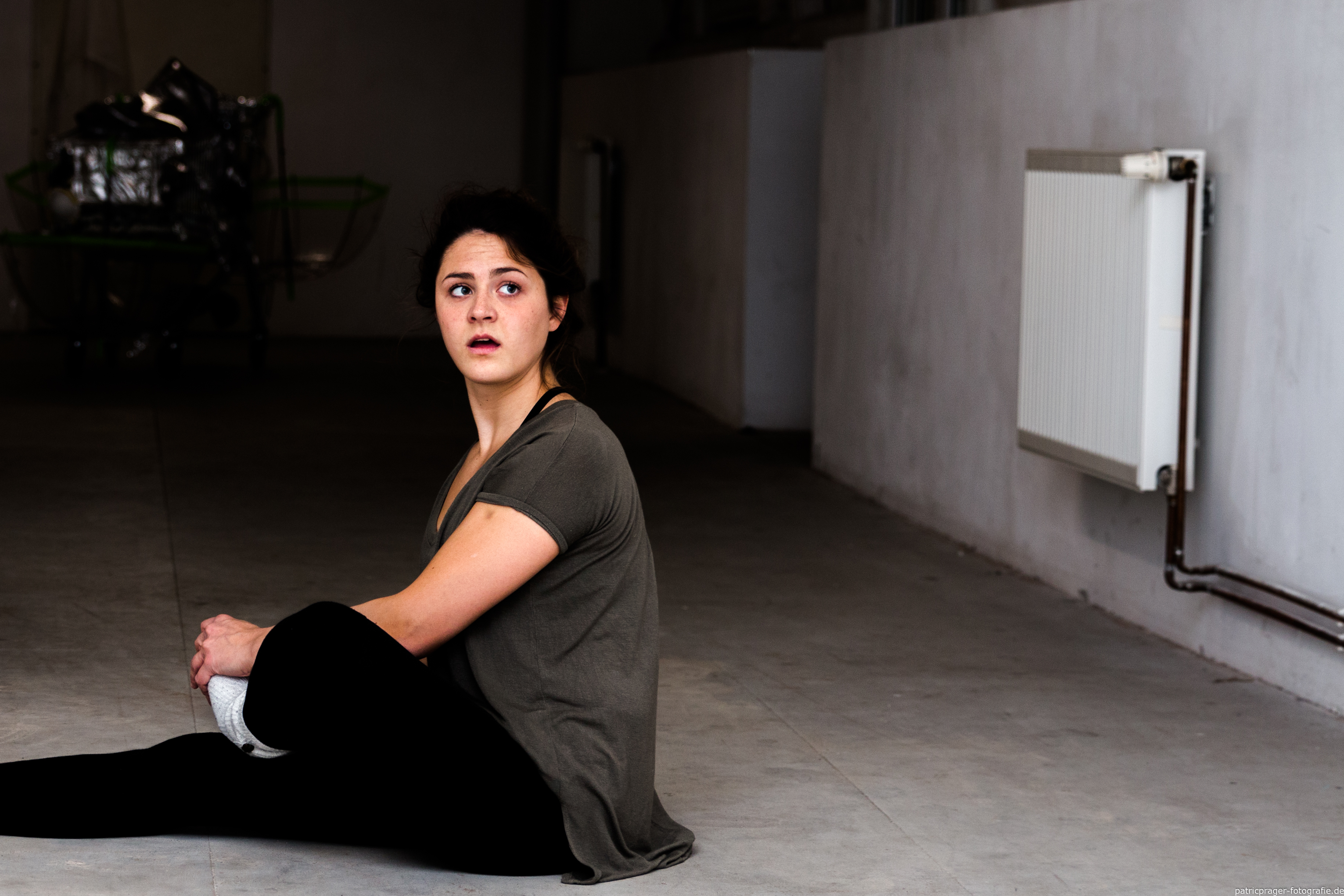 Da war zunächst mal das Licht. Zuerst hatte ich es vor einer weißen Wand versucht, aber das war irgendwie völlig flach und langweilig. Also kam ich auf die Idee mit dem Fenster. Sonne von hinten und durch die Rollos fand ich schon mal ganz nett, und wenn die Blende auf ist, dann hat man hier eigentlich einen schönen Effekt. Aber zu weit runter mit der Blende ging auch nicht, denn die nächste Schwierigkeit war, den richtigen Schärfepunkt zu treffen. Nicht so einfach, wenn man nachdem dem Auslösen genau zehn Sekunden Zeit hat, um an die richtige Position zu kommen. Ich habe es mit einem Selbstauslöser versucht (da gibt es eine ganz brauchbare App von Canon), aber irgendwie sahen die Fotos alle verkrampft aus. Kann Zufall sein, glaube ich aber nicht. Ich habe das Schärfethema dann zu lösen versucht, indem ich zunächst ein Stativ an „meine“ Position gestellt, fokussiert und mir dann die Position auf dem Boden markiert habe. Ist ganz gut gelungen, finde ich, aber optimal ist es natürlich nicht.
