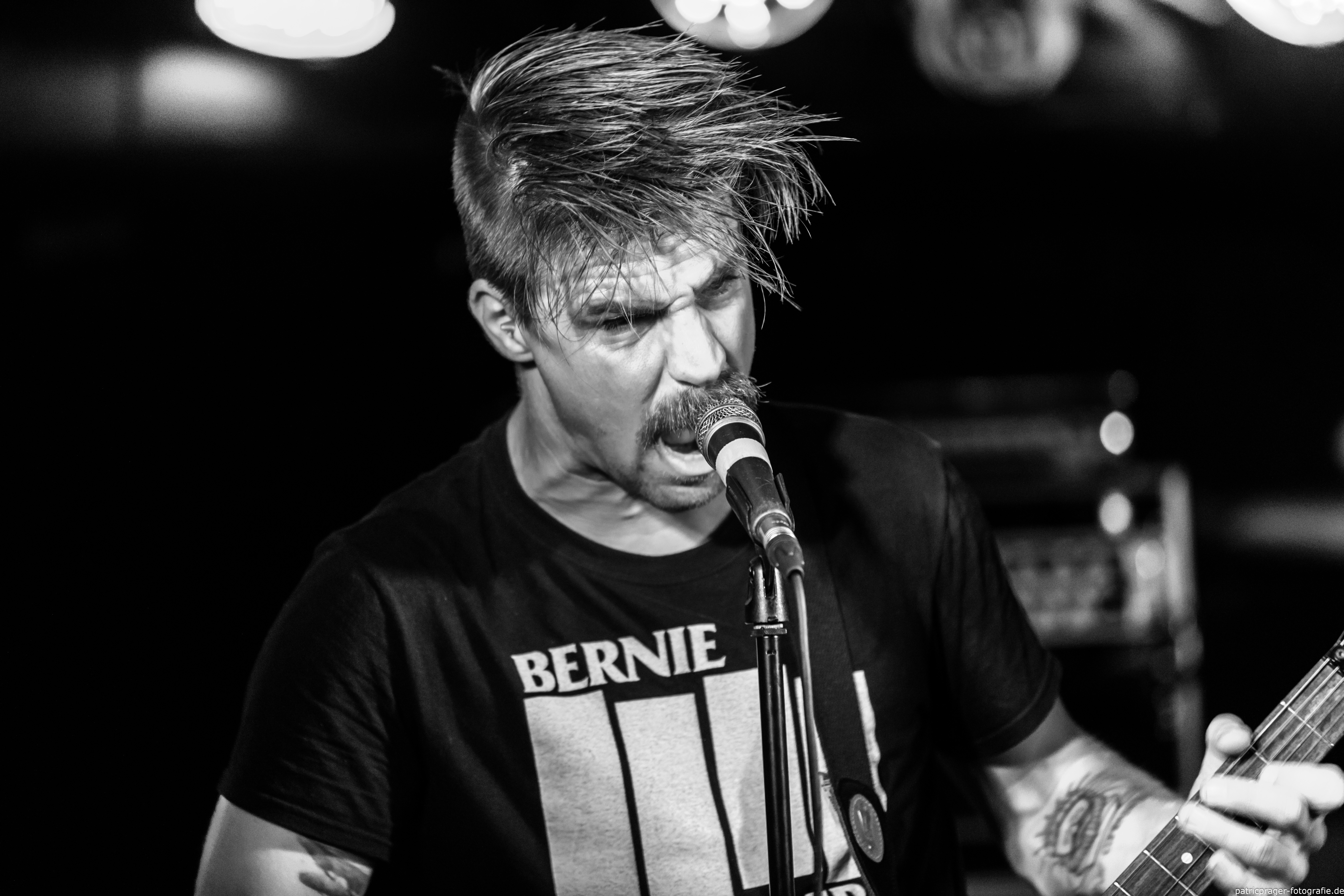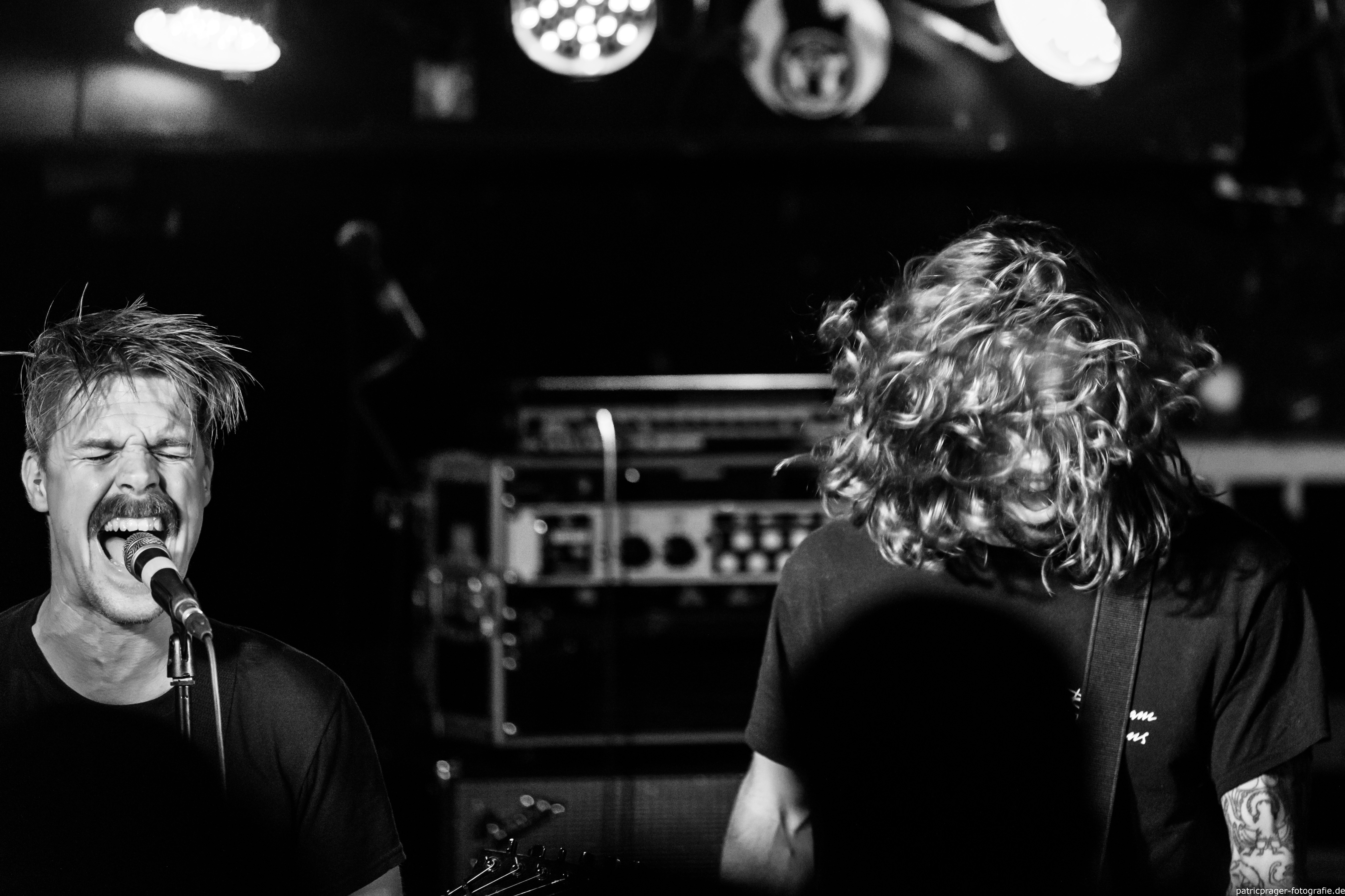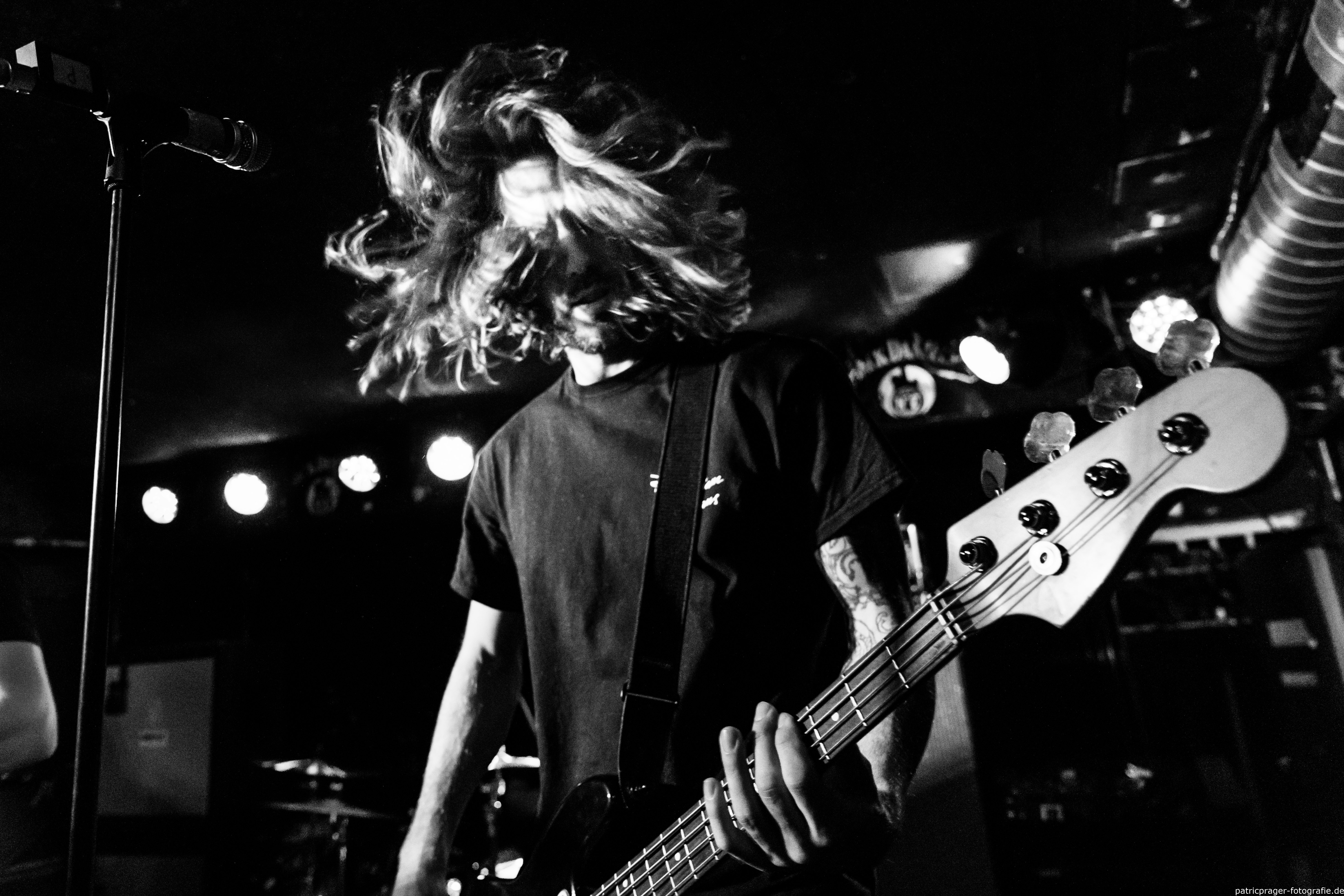 Wie in Teil 1 angekündingt, jetzt noch schnell ein paar Worte zum Thema Farbe. Ich habe die Bilder in s/w gelassen weil das Licht im Keller, na sagen wir mal, bescheiden war. Nicht nur die Menge war begrenzt (darum die hohe ISO und die eigentlich zu langen Belichtungszeiten), zusätzlich war auch die Farbe, ich sage mal, herausfordernd. Rot, grün und blau als Spot, von hinten und wild durcheinander, sind jetzt nicht die beste Kombi für geile Fotos. Blitzen war auch nicht gewünscht. Ich hab dann in der Bearbeitung einfach mal komplett auf Farbe verzichtet und die Bilder in s/w gezogen, was recht dynamische Bilder gibt.